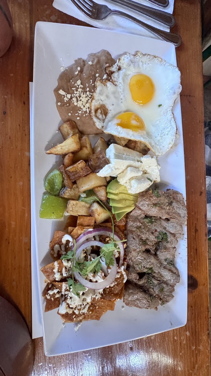 Everything we ordered was delicious. Chilaquiles green and red. The rachera in the chilaquiles was tender and juice. Their juices are very good. The omelet with green chile was very good. The corn and flour tortillas are fresh and made there. We were there on a Saturday, and our estimated wait time was 45 minutes, but we only waited for about 20 minutes. They offer vallet parking. We tried the conchas, they were a little dry for our like.